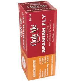 Only Me Spanish Fly is a combination of : 1) cantharis 2) Tribulus Terrestries 3) Damiana 4) Caladiun Seguinum These all are combined with knowing the rational efficacy & safety. This combination induces strong desire & helps to increase the strength of sexual organs, increase vitality & reduce sexual neurasthenia & helps in advance age. It is also useful in impotency & helps in sexual debility & nervous prostration & is effective to overcome frigidity in females.